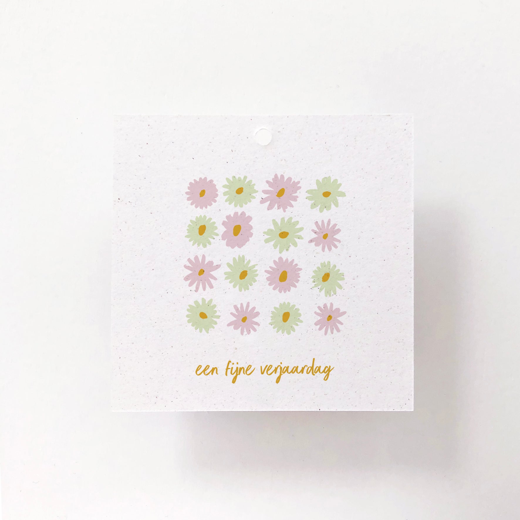 Afwerking: Elk kaartje is afgewerkt met een boorgaatje van 4mm om het kaartje vast te hangen aan een bloemstuk of cadeautje.
